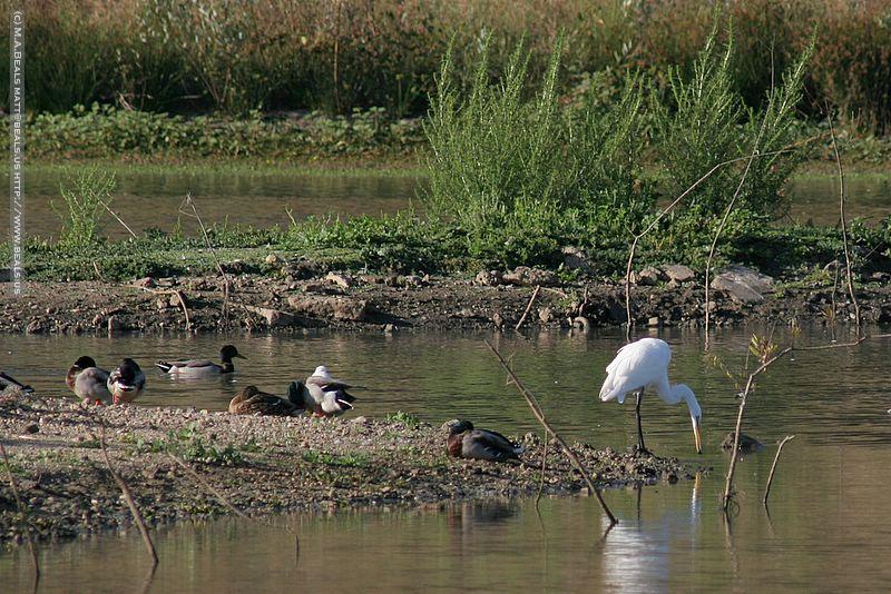 carrlake.050924 -- Great egret foraging around mallards